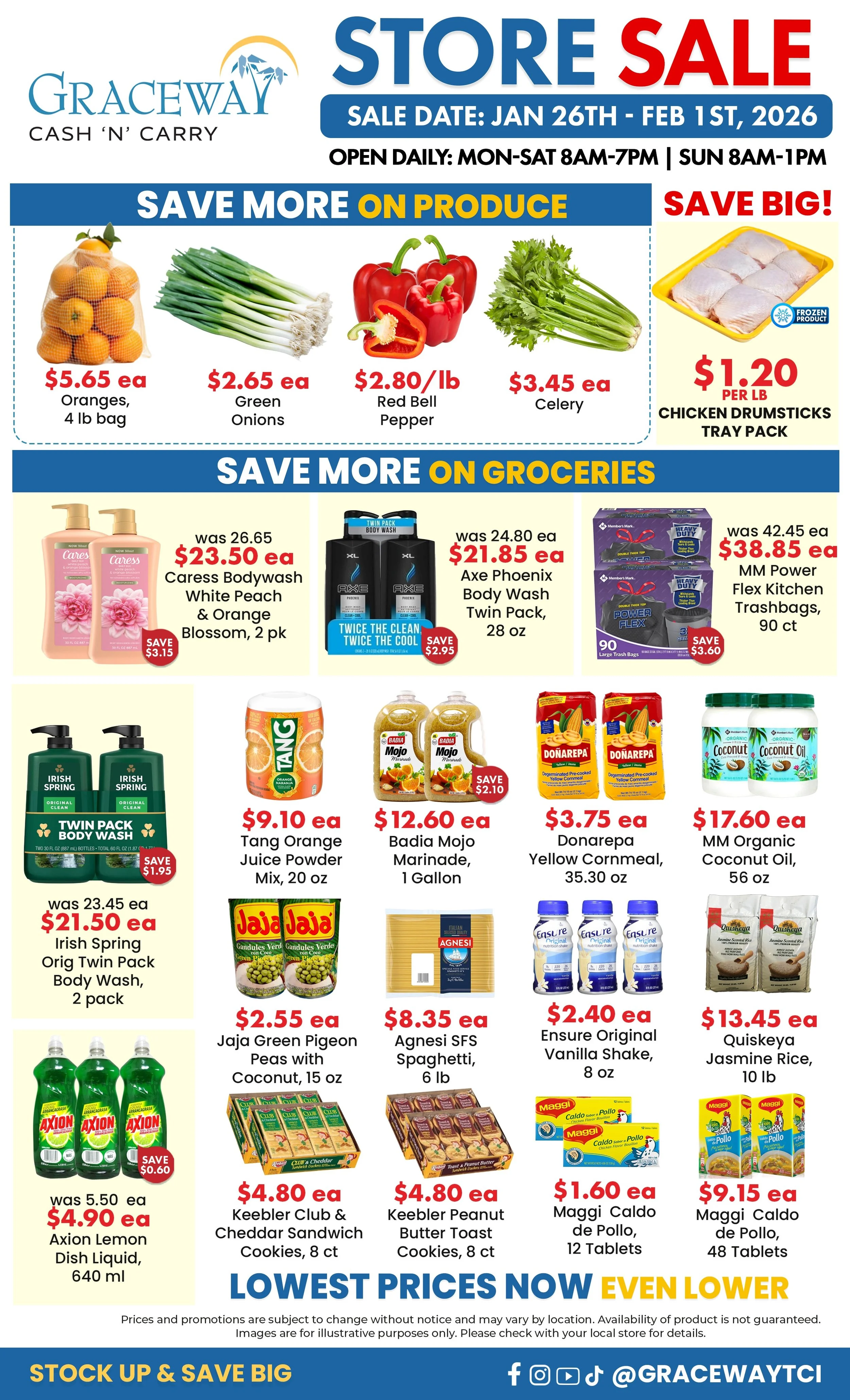 Buy quality groceries and wine from Graceway Supermarkets, servicing the Turks and Caicos Islands with locations in Leeward Highway, Grace Bay Area & Down Town, Providenciales.