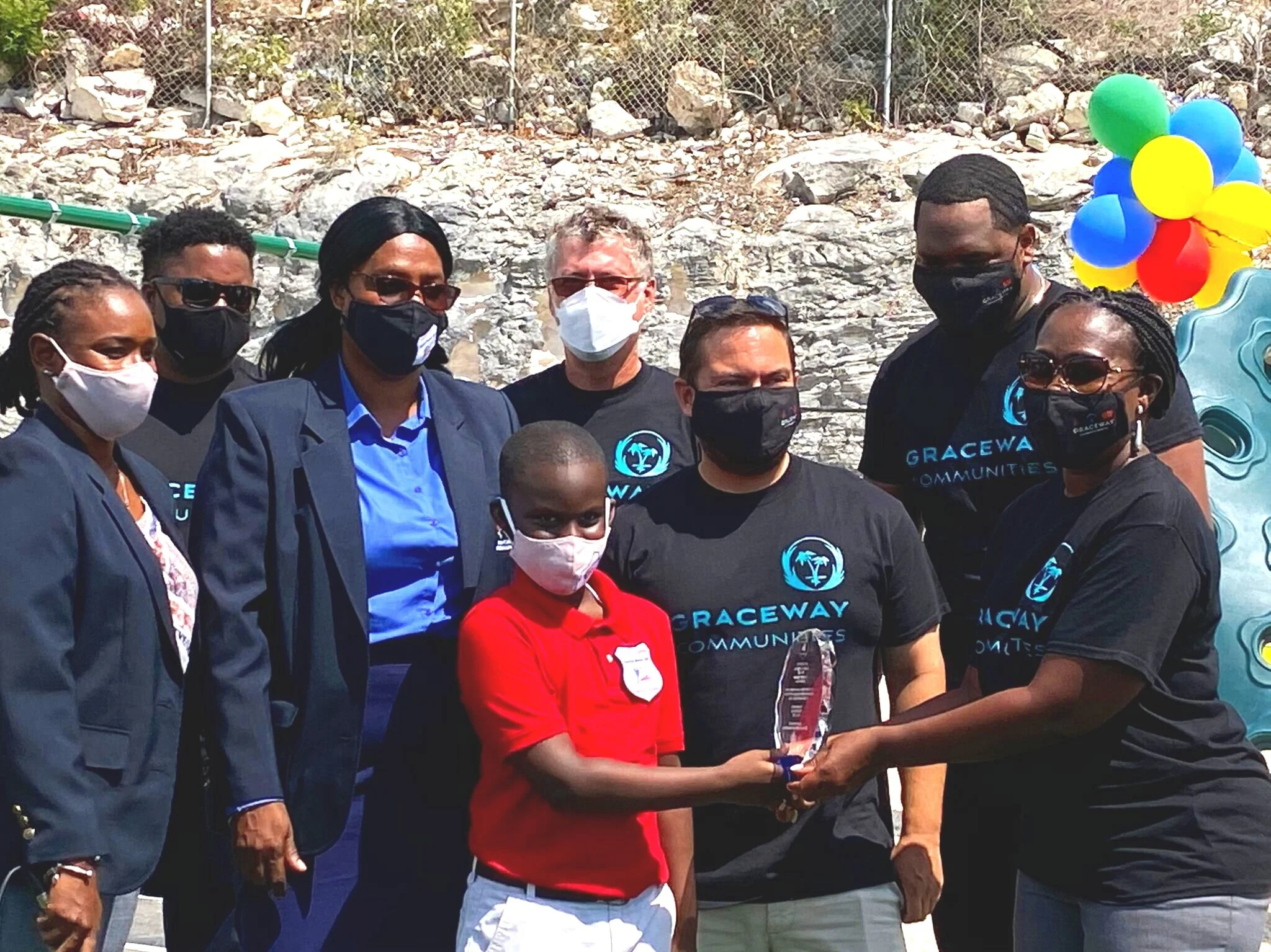 The SNAP Center presented Graceway Communities with a plaque as a token of appreciation, along with a song performed by the students about how much they love their new playground and how thankful they were. Reverend Jupp of St. Monica's Anglican Church completed the blessing and dedication of the playground, followed by the cutting of the ribbon by students, marking the official opening of the playground.