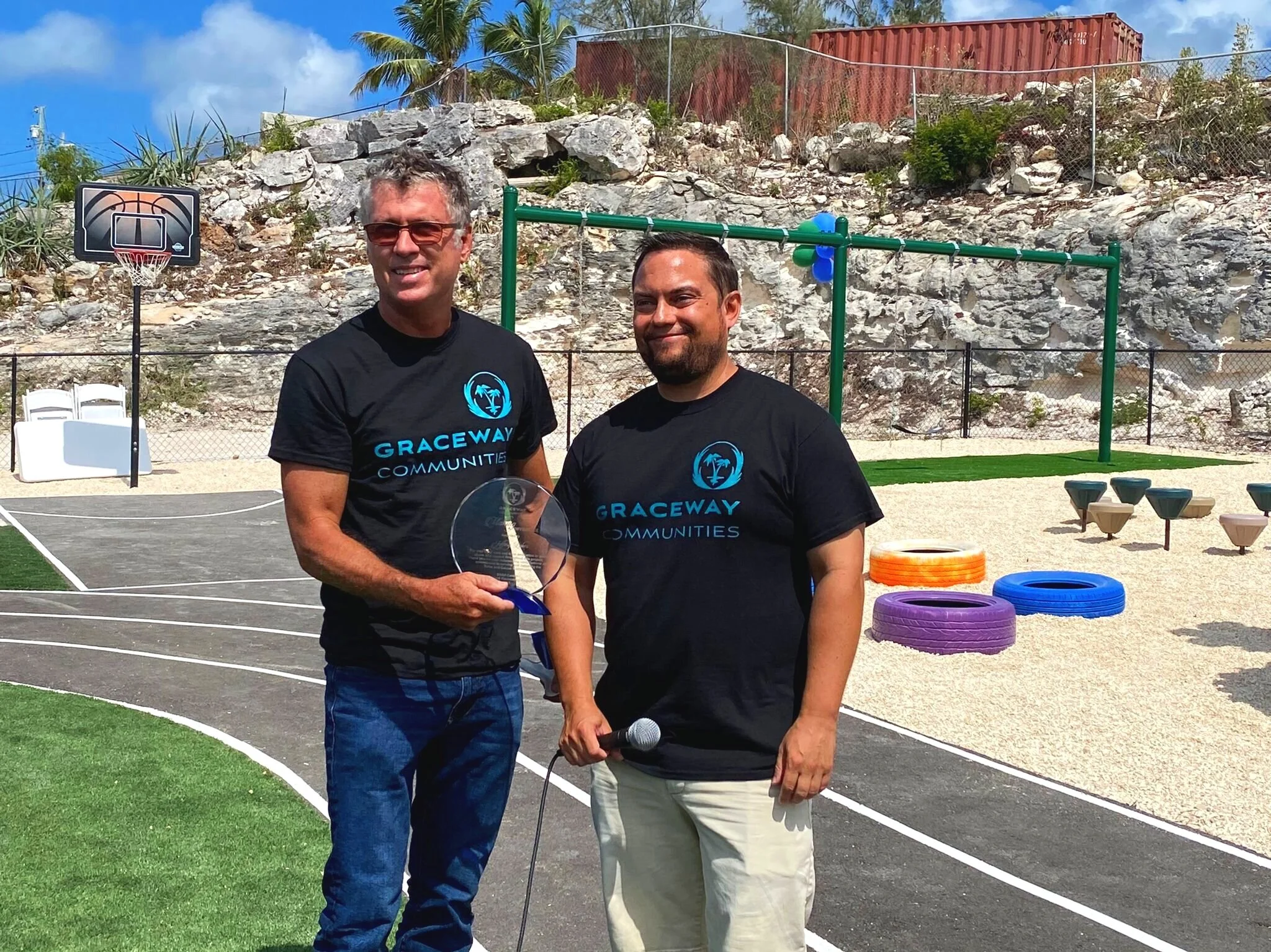 Special thanks were given to Jeffrey Luker of Graceway Supermarkets, who has gone above and beyond in managing and overseeing this project. Special thanks also goes to local businesses that assisted in this development: Windward Development assisting in design and earth works coordination, Robinsons Survey assisting in survey works, T-Holdings Ltd. provided labor at cost for installation of equipment and fencing, Caribbean Dredging for donating trucking services, and, Herzog for providing asphalt at cost and equipment for free!