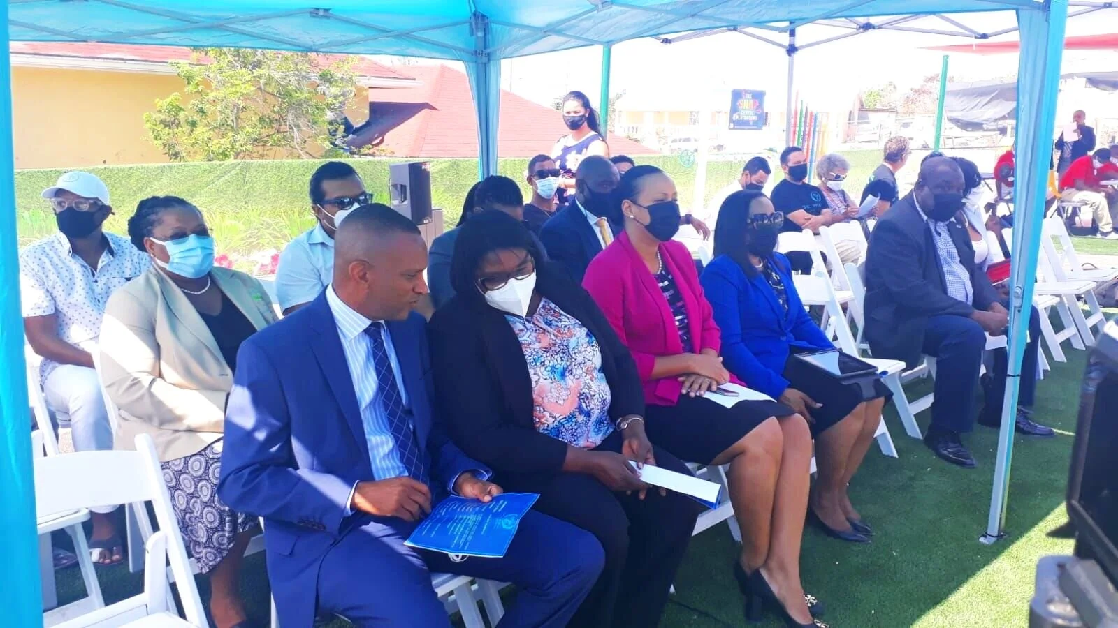 In attendance was Deputy Permanent Secretary- Mrs. Tamara Howell-Robinson, Director of Sports- Mr. Jarette Forbes, Senior Sports Officer- Mr. Alvin Parker, President of the Commonwealth Games Association- Godfrey Been, Minister of Public Works- Mr. Roger Harvey, along with, students and faculty of the SNAP Center, and, Graceway Community members.